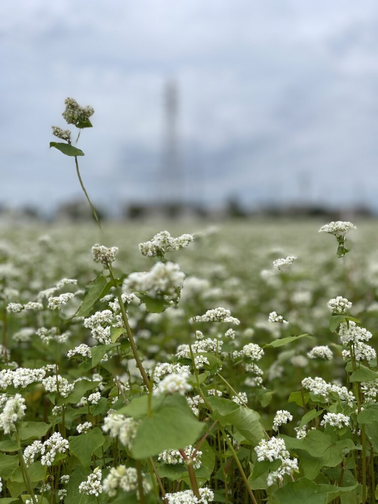 契約農家さんのそば畑です。そばの花が満開です。